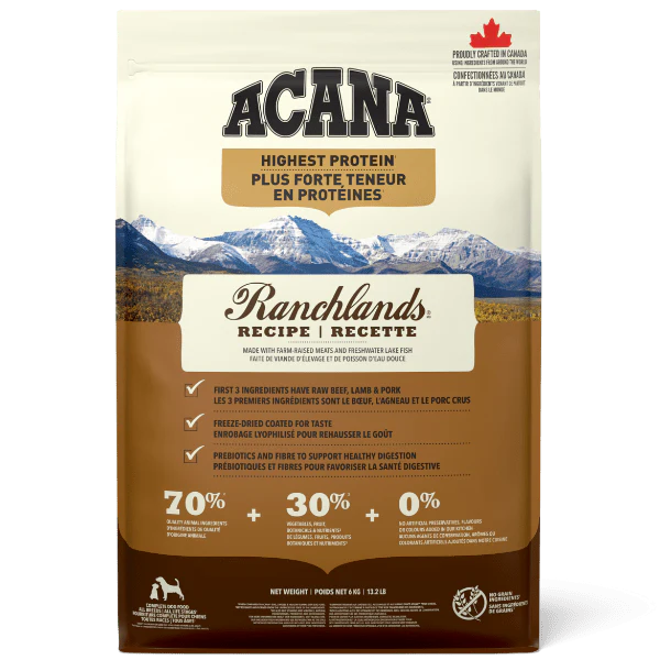 Composición: Carne de vacuno cruda (9%), cordero crudo (8%), cerdo crudo (8%), carne de vacuno deshidratada (8%), cordero deshidratado (8%), cerdo deshidratado (7%), guisantes verdes enteros, lentejas rojas enteras, garbanzos enteros, grasa de Ternera (5%), hígado de vacuno crudo(4%), hígado de cerdo crudo (4%), pescado de lago de agua dulce crudo* (4%), lentejas verdes enteras, judías pintas enteras, guisantes amarillos enteros, almidón de guisante, bisonte crudo (2%), aceite de pescado (2%), fibra de lentejas, hígado de cordero crudo (0,5%), tripas de cordero crudas (0,5%), alga kelp deshidratada, sal, carne de vacuno e hígado liofilizados, calabaza entera fresca, calabaza butternut entera fresca, zanahorias enteras frescas, manzanas enteras frescas, peras enteras frescas, calabacines enteros frescos, raíz de achicoria deshidratada, col rizada fresca, espinacas frescas, hojas de nabo frescas, hojas de remolacha frescas, arándanos rojos enteros frescos, arándanos azules enteros, bayas de saskatoon enteras, cúrcuma, cardo lechoso, raíz de bardana, lavanda, raíz de malvavisco, escaramujos. *mezcla variada de arenque de lago crudo, pez blanco, lucio del norte y salmonete.