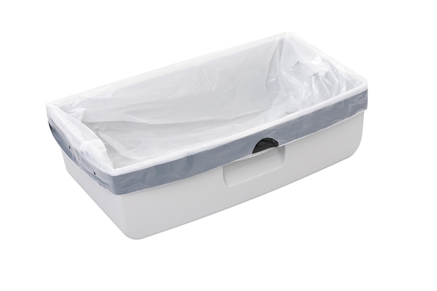 Las bolsas se insertan fácilmente en el contenedor del inodoro, donde capturan los desechos sólidos. Una vez llenas, se pueden retirar fácilmente, cerrar y desechar, sin contacto con la suciedad y sin olores desagradables.