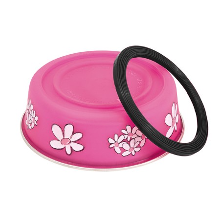 Con divertido estampado de flores en su exterior.