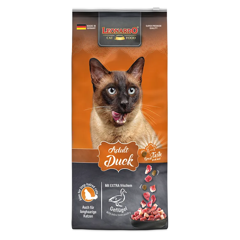 Carne de ave fresca (30 %); proteína de pato (18 %); arroz; proteína de ave con bajo contenido en ceniza (10 %); fécula de patata; grasa de ave; hígado de ave; centeno; huevo; harina de pescado de agua salada (2,5 %); zooplancton marino (krill) (2,5 %); levadura de cerveza inactivada; semilla de uva prensada por expulsor (1,5 %); semillas de chía (1,3 %); algarroba tronzada; harina de germen de guar; cloruro sódico; cloruro potásico; inulina de achicoria secado hidrolizado malteado molido.