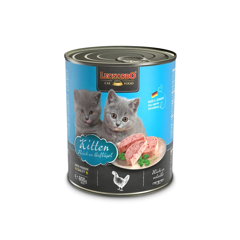 Carnes y subproductos animales (ave 40 %, ternera 25 %) (65 %); caldo de carne (29,5 %); huevo y derivados (huevo entero) (4 %); minerales (0,5 %); aceites y grasas (aceite de salmón); cáscaras de huevo (0,5 %) secado