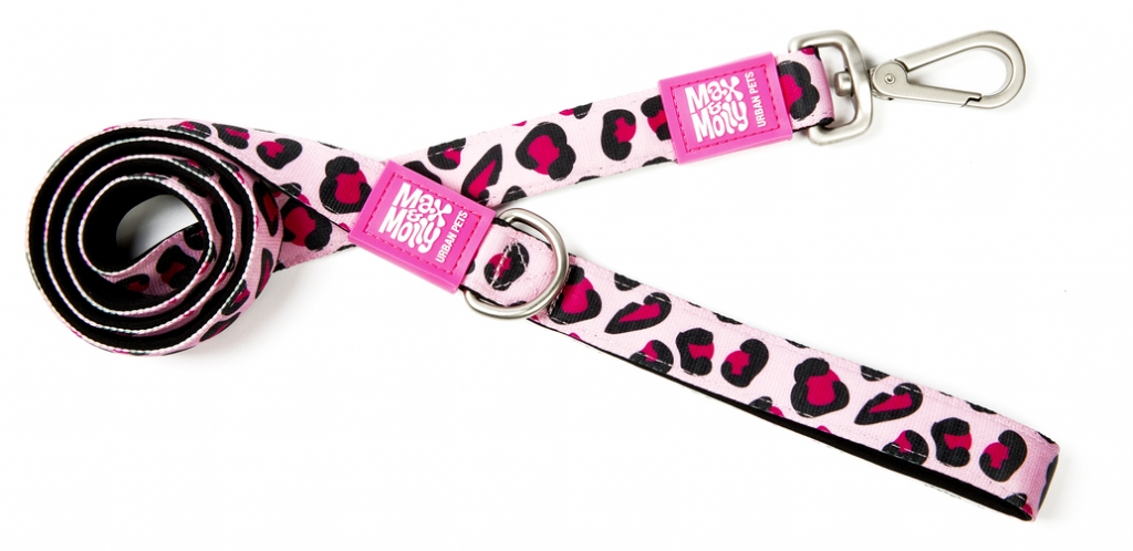 Correa para perros con estampado de leopardo rosa, cincha de dos capas con suave acolchado, gran comodidad de uso, mosquetón que gira 360°, anilla en forma de D en el asa, de neopreno y poliéster.