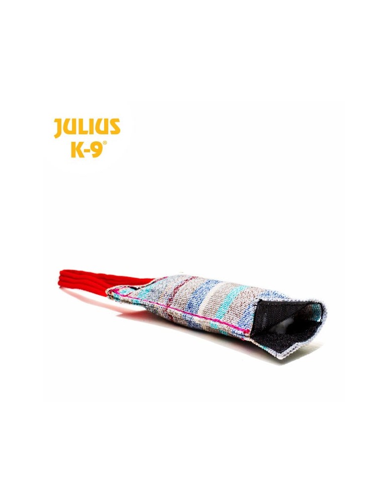 Mordedor Escondite Julius-K9, juguete rellenable para perros, motivador de tela con asa, resistente y duradero.