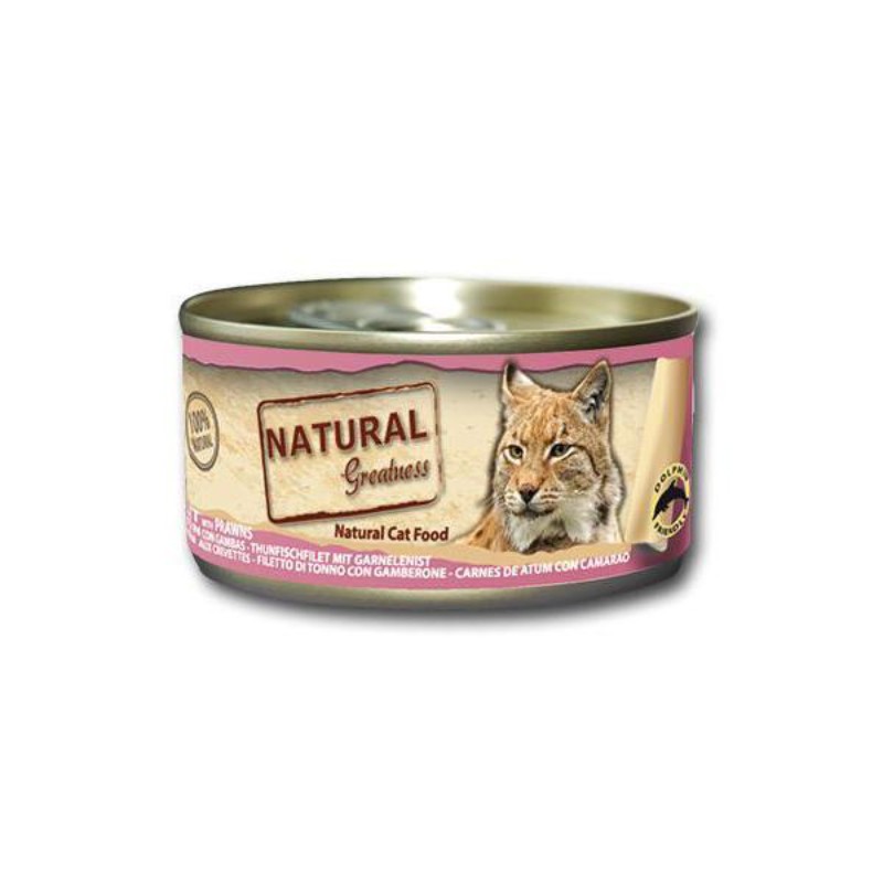 Filete de atún (55 %), Caldo de pescado (23 %), Gambas (10 %), Calabaza (10 %), Arroz (1 %) y Maltodextrina (1 %).