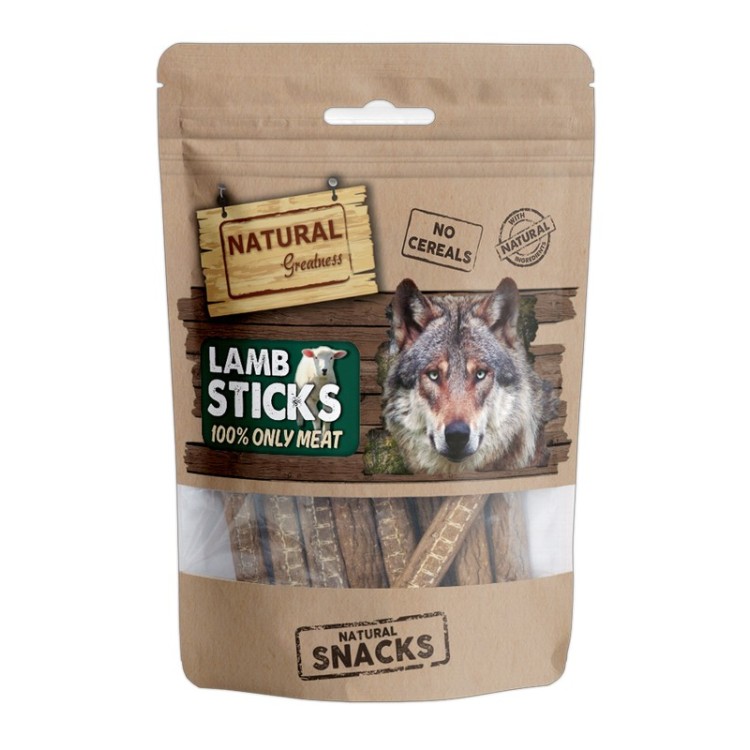 Los sticks de cordero de Natural Greatness son un premio exquisito deshidratado a baja temperatura para preservar todas sus propiedades nutricionales. Gracias a su composición monoproteica, es el snack de elección para premiar a perros que requieren una dieta cuidada sin renunciar a un sabor intenso y natural.
