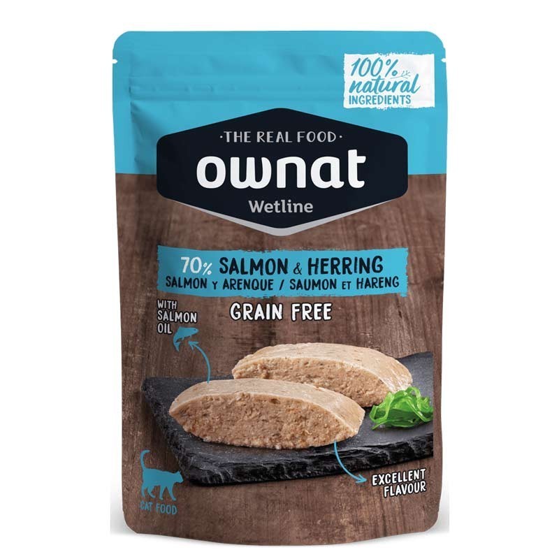 Salmón (45%), caldo (28,8%), arenque (25%), minerales, aceite de salmón, algas marinas (0,1%).