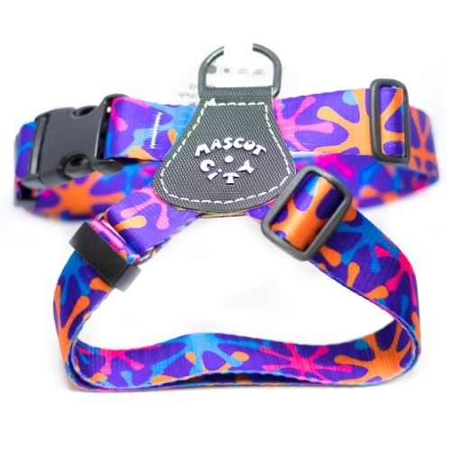 Este petral de nylon «Salpicaduras Lila» es la combinación perfecta de resistencia y estilo. Está hecho de un nylon de alta calidad que asegura durabilidad y confort.