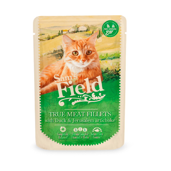 85% de filetes de carne (77% de pollo, 8% de pato), caldo de pollo, 4% de alcachofa de Jerusalén, minerales, almidón de guisantes.