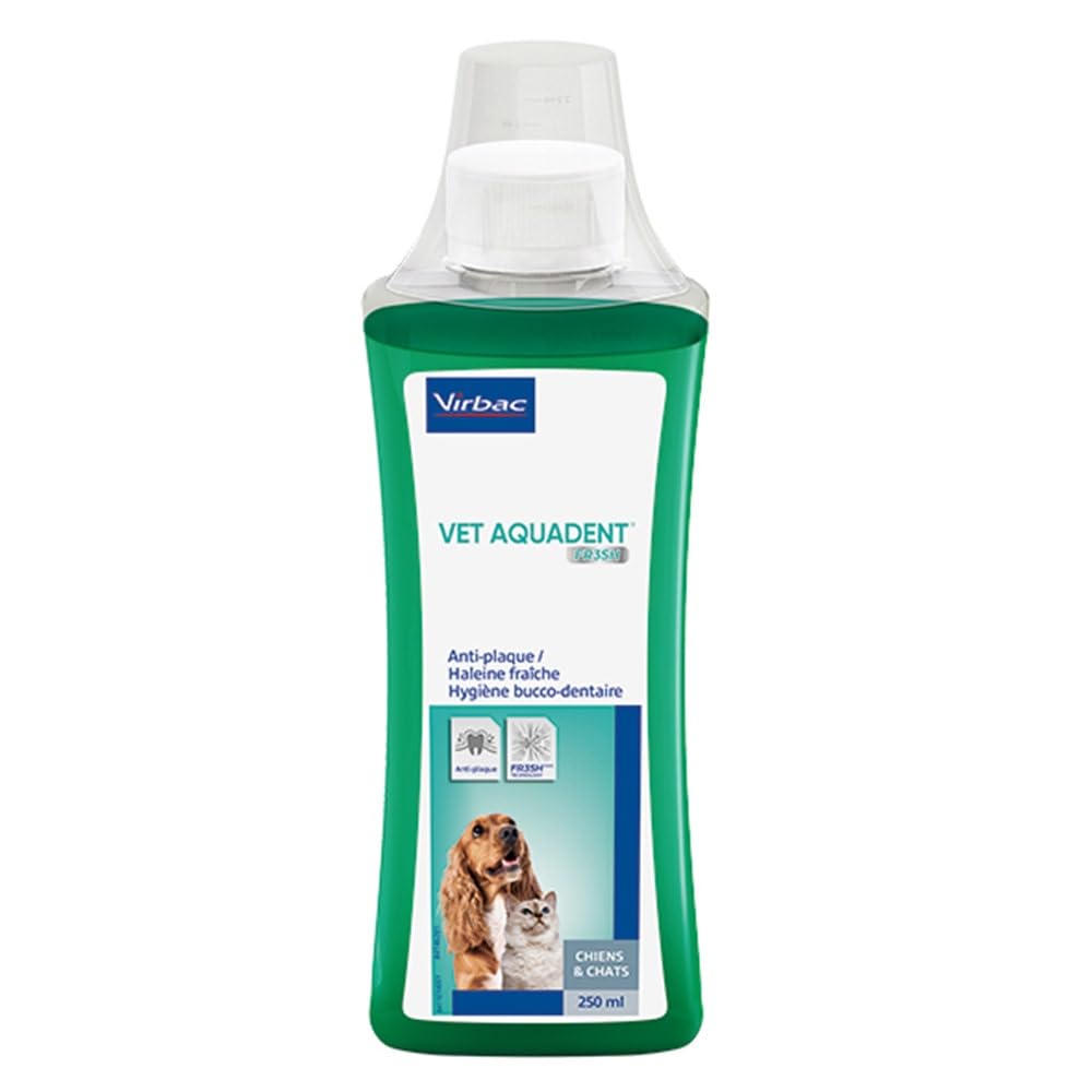 Vetaquadent es una solución oral para la higiene dental de perros y gatos, que por su exclusiva formulación permite prevenir la aparición de la placa dental y proporciona un aliento sano y fresco.