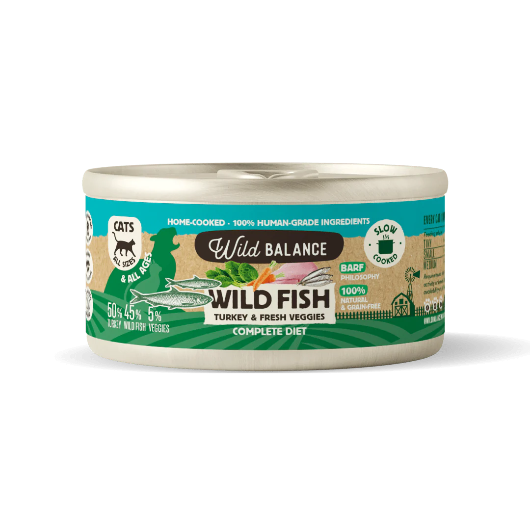 50% Pavo (35% pavo entero, 10% hígado de pavo, 5% corazón de pavo), 45% Pescaditos salvajes (espadín), 3% Zanahoria y 2% Espinaca. Contiene huesos triturados para una alimentación completa.